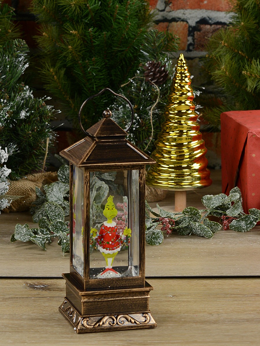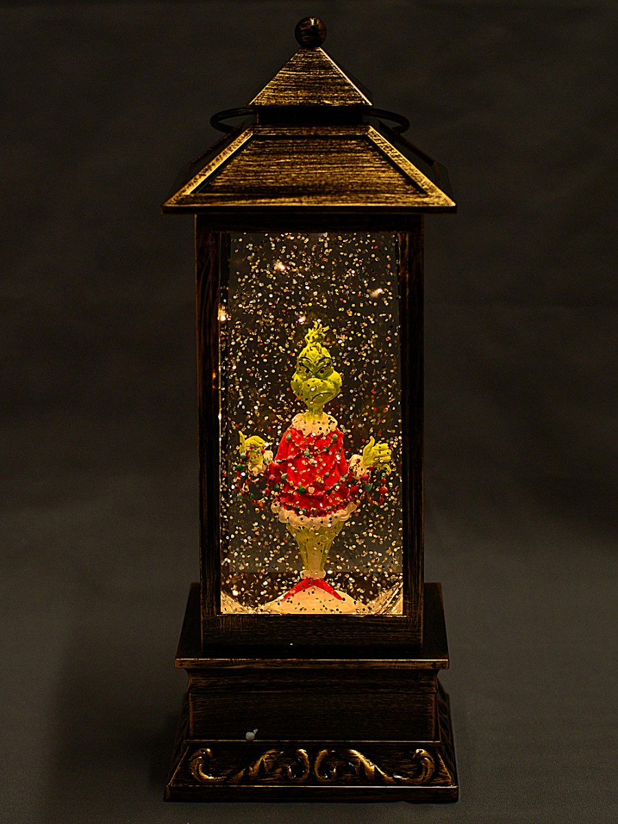 Whirl, twirl, and glow! The 28cm Grinch With String Lights In Swirling Glitter Snow Globe Lantern holds the best little scene - a glittery snowstorm dancing 'round the Grinch himself. Dynamic, dazzling, and nostalgic, it's winter magic in a lantern. Bring home the sparkle - make it yours today!