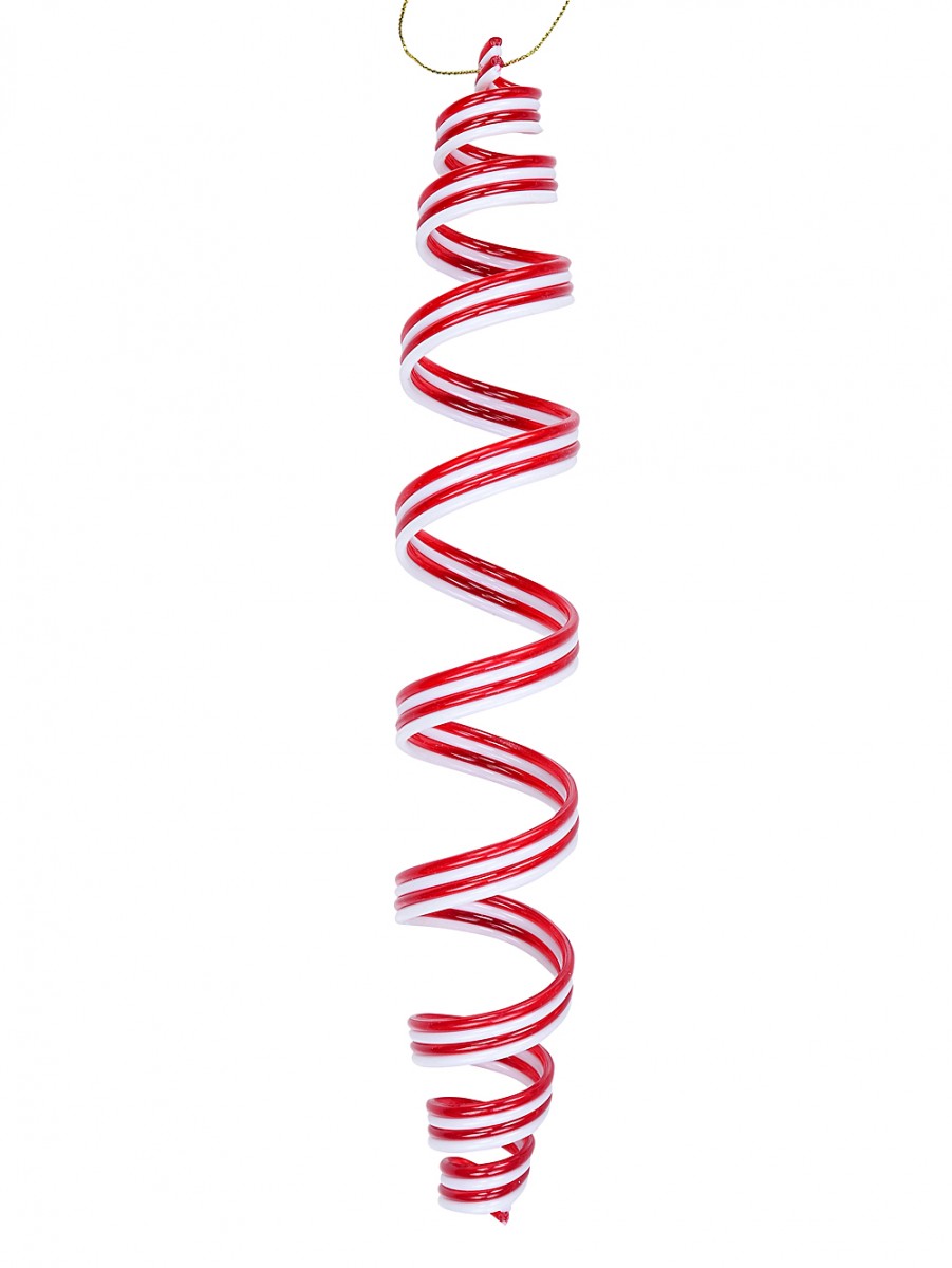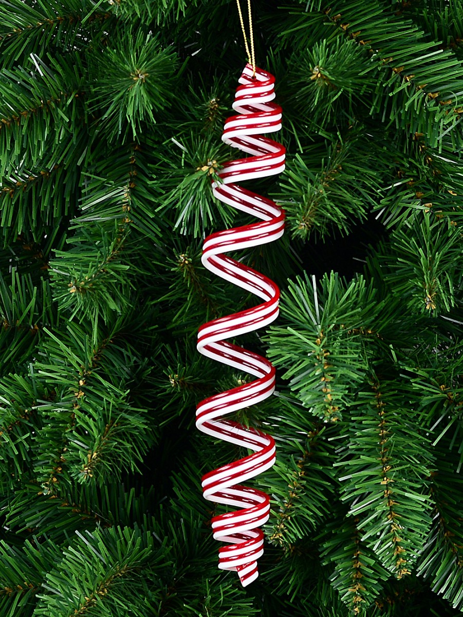 Wavy ribbon candy with a spiral twist, these hanging Christmas decorations are layered in festive red and white stripes, for an eye-catching effect that draws attention. They're generously sized at 240mm x 40mm x 28cm so you can be sure they'll stand out on your tree, even from a distance. An attached gold string makes it really easy to hang too.