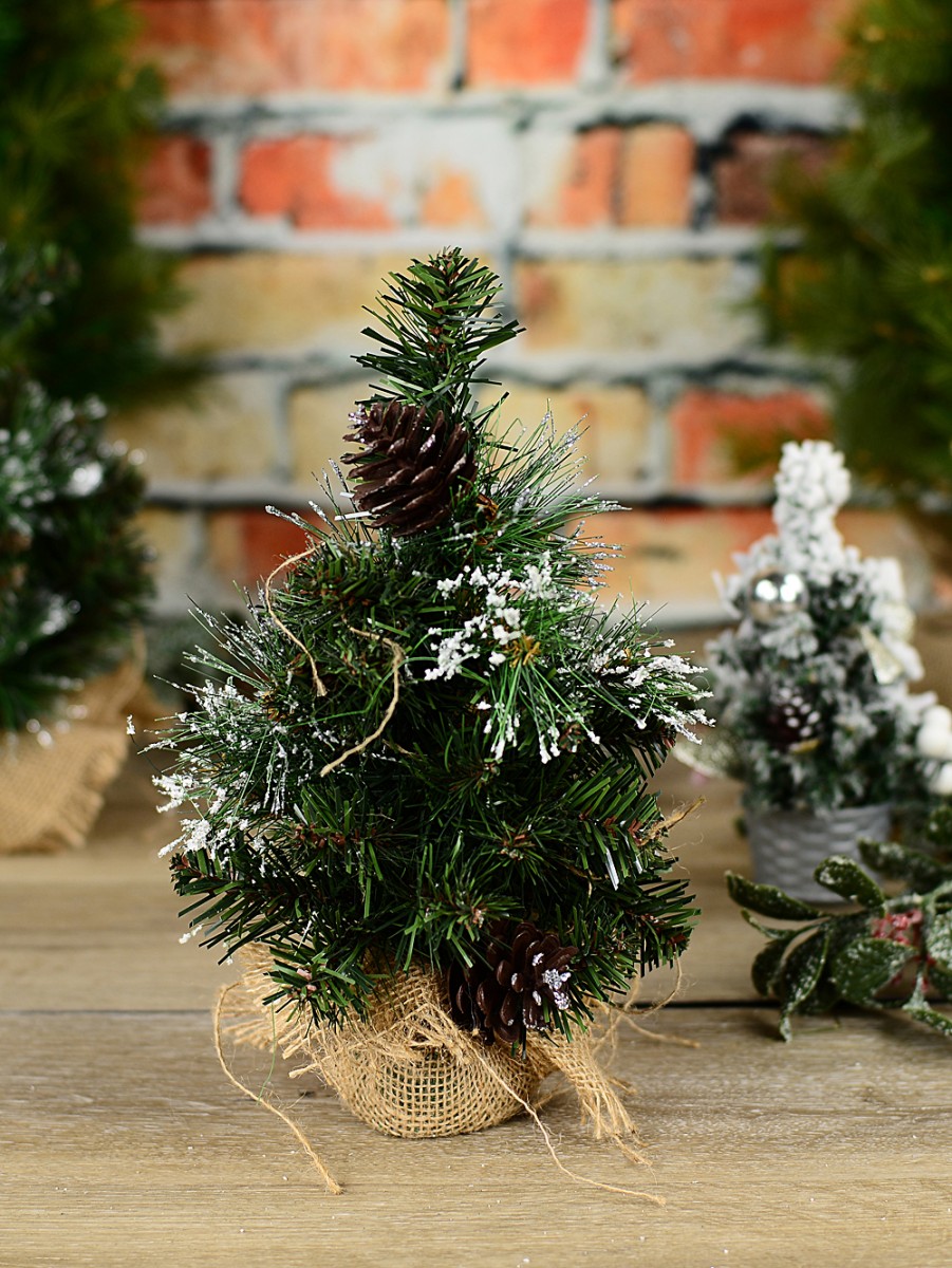Calling all DIY lovers! Add that special touch to your holiday table or other focal point. This small table top pine tree provides a blank canvas on which you can work your crafty holiday magic. This flocked and glittered tree is covered in a light dusting of snow and silver accented pine cones. All it needs is some personalisation from you! The possibilities for its 37 individual tips are limitless- add garlands, tinsel, assorted baubles, tiny fairy lights, holly and red berries, festive poinsettia, a star on top... whatever you can dream, you can make! Tree measures 20 cm x 20 cm x 30 cm.