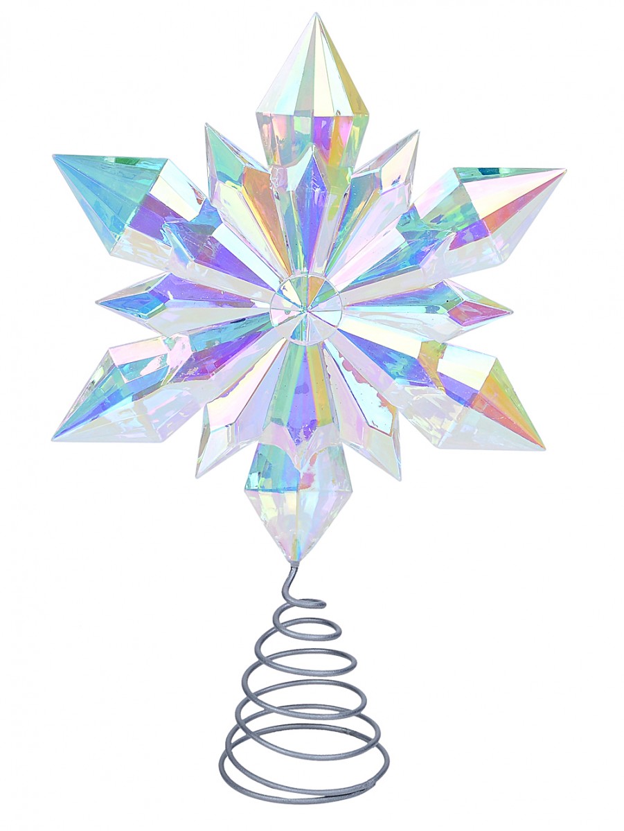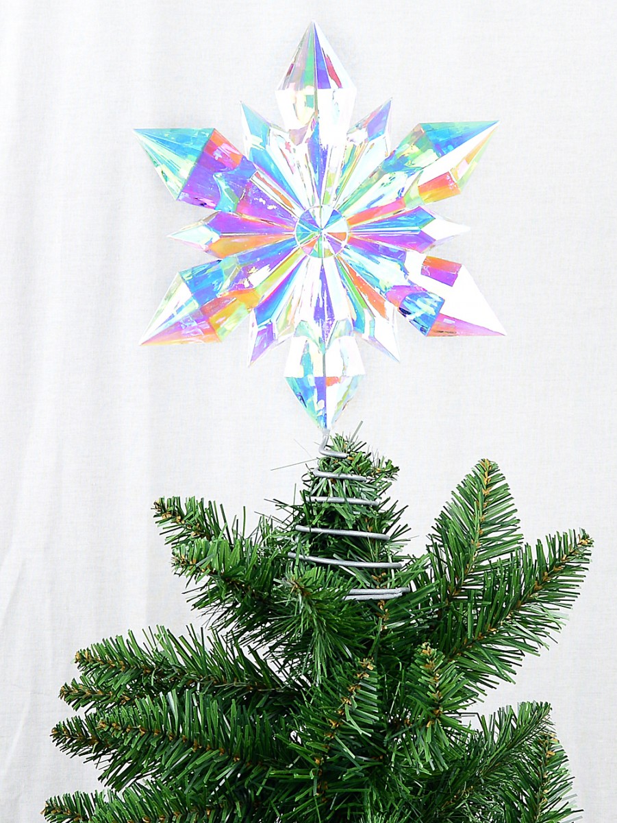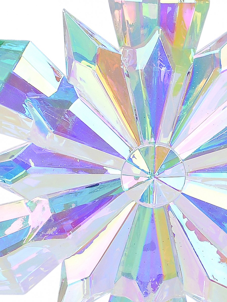 This snowflake star is crafted in sparkling clear iridescent acrylic that refracts light into an array of glowing colours. The secret's in the way iridescence works - bending light so every angle gives you something a little bit different. And we keep calling it a snowflake but, if you look at it from far or up close… it's really got more of that classic star shape we all love.