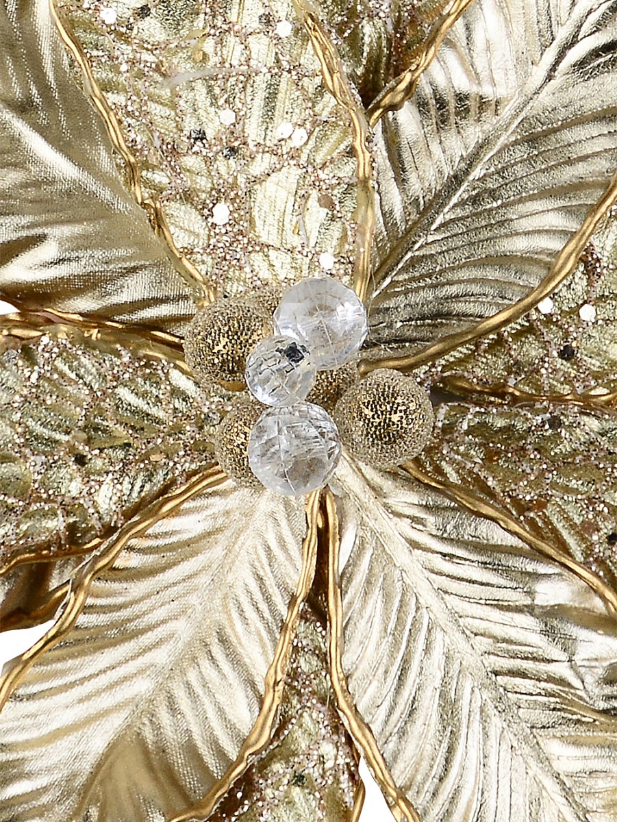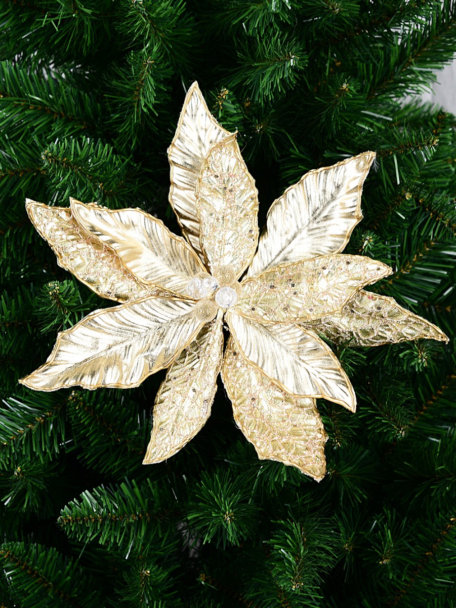 There's an alligator clip so you can add this to wreaths, garlands, bouquets, or simply pop it in a floral arrangement to bring Christmas cheer wherever you like. With wired petals you can fluff and adjust however you need - it's 32cm x 32cm x 23cm when spruced but honestly works at any angle. Some glitter does come off at first but that just adds more sparkle to your floors.
