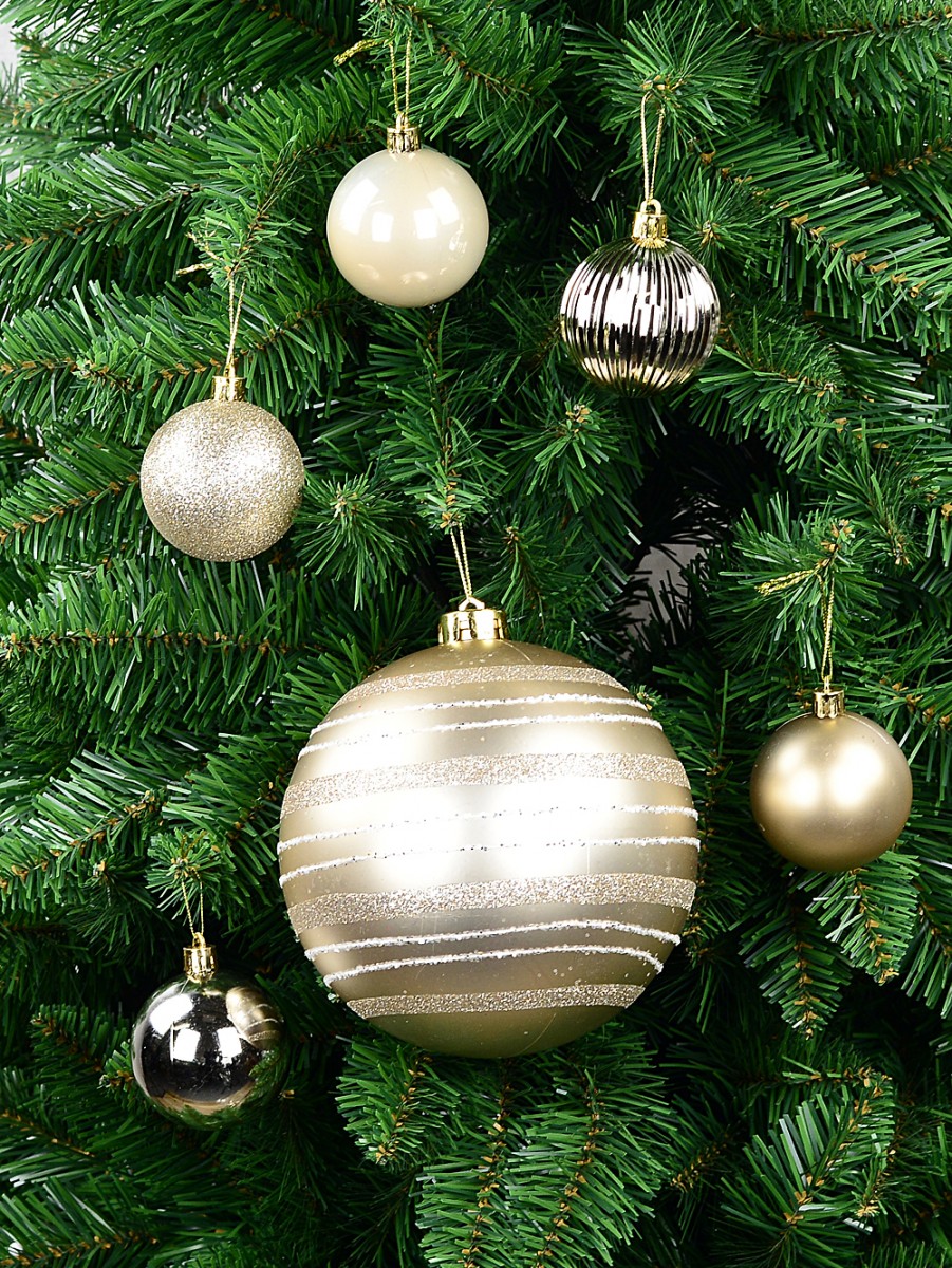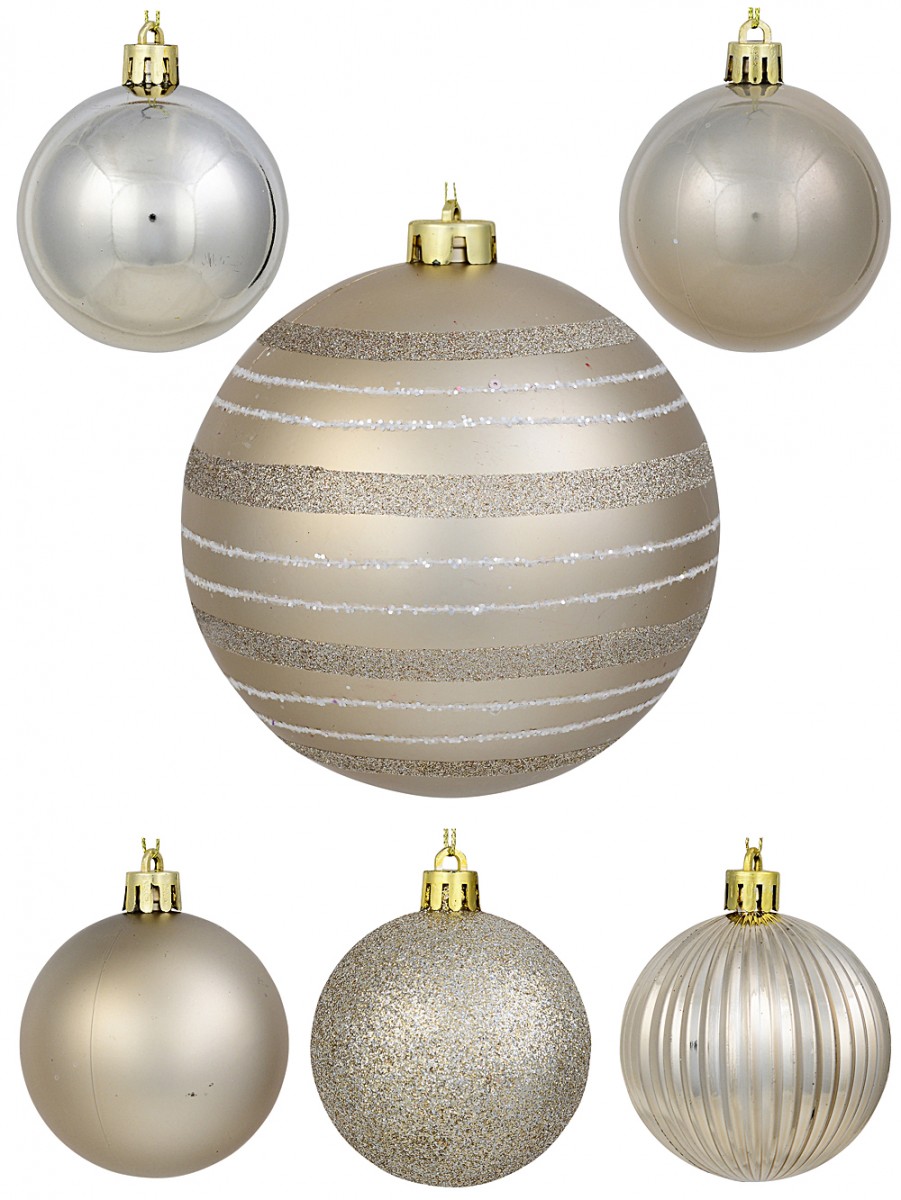We really love this set of platinum Christmas baubles and we think you will too. There are 32 of them in a pack, made in all sorts of lovely finishes - classic matte, shiny, soft pearl, and sparkling glitter. If you want a magical family Christmas in your home that will feel just like a fairytale, this bauble set is perfect for you. The pack includes different sizes, two gorgeous big ones at 15cm and the rest at 60mm, giving you some variety when you're decorating. You'll find six with a shiny pumpkin look, six matte, six glittery, six pearly and another six in shiny finishes.