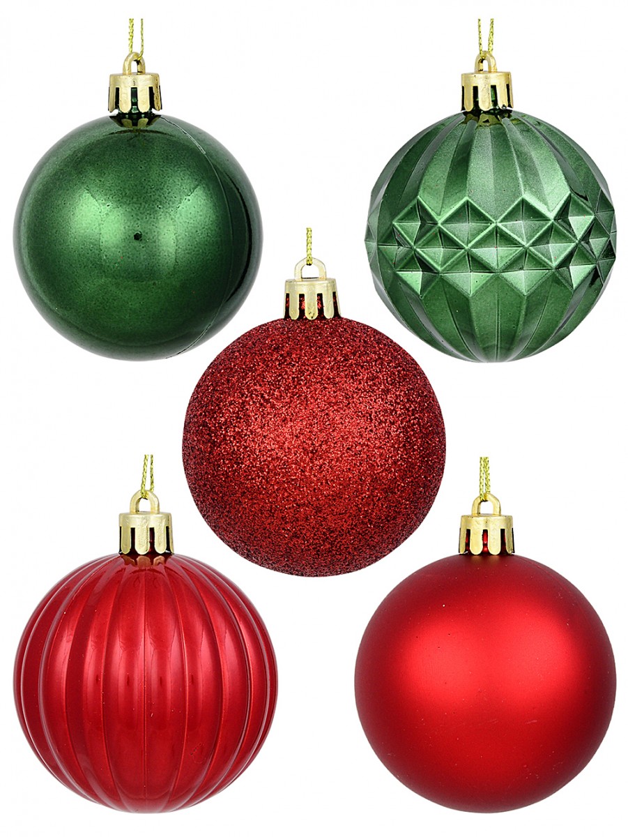 You get seven of each style - pearlescent red with those beautiful pumpkin lines, plain matte red (a real classic), red glitter (the sparkle is just wow), shiny geometric green baubles (those facets are mesmerising), and some simple, glossy green balls for balance. If we had to be honest with ourselves…we like them all equally. As each one is crafted to be shatterproof, there's no need to worry about breakages during the excitement of decorating with the kids or pets around.