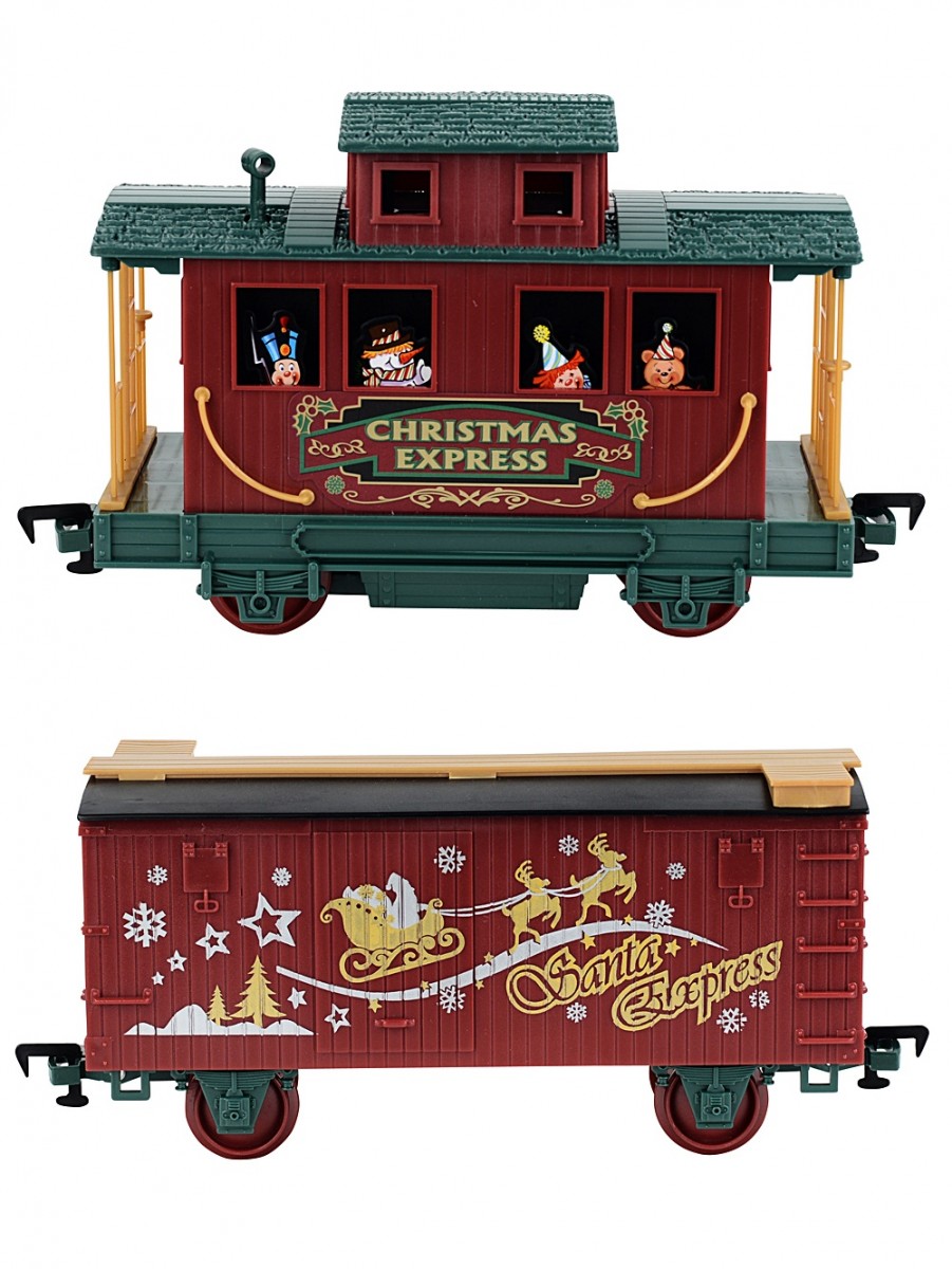 The details on this train set are gorgeous too. Matte colours of deep red, green, black, gold accents...just magical. There's 4 carriages with whimsical festive art - one says "Noel" with coal in tow, another is a caboose with little toy passengers bobbing past every window, plus a boxcar decked out in Santa and his reindeer. The track is oval shaped at 1.54m x 1.29m (though you can rearrange them into a circle or new design if you like), so it's perfect under your main tree or creating a winter wonderland along your buffet or lounge.
