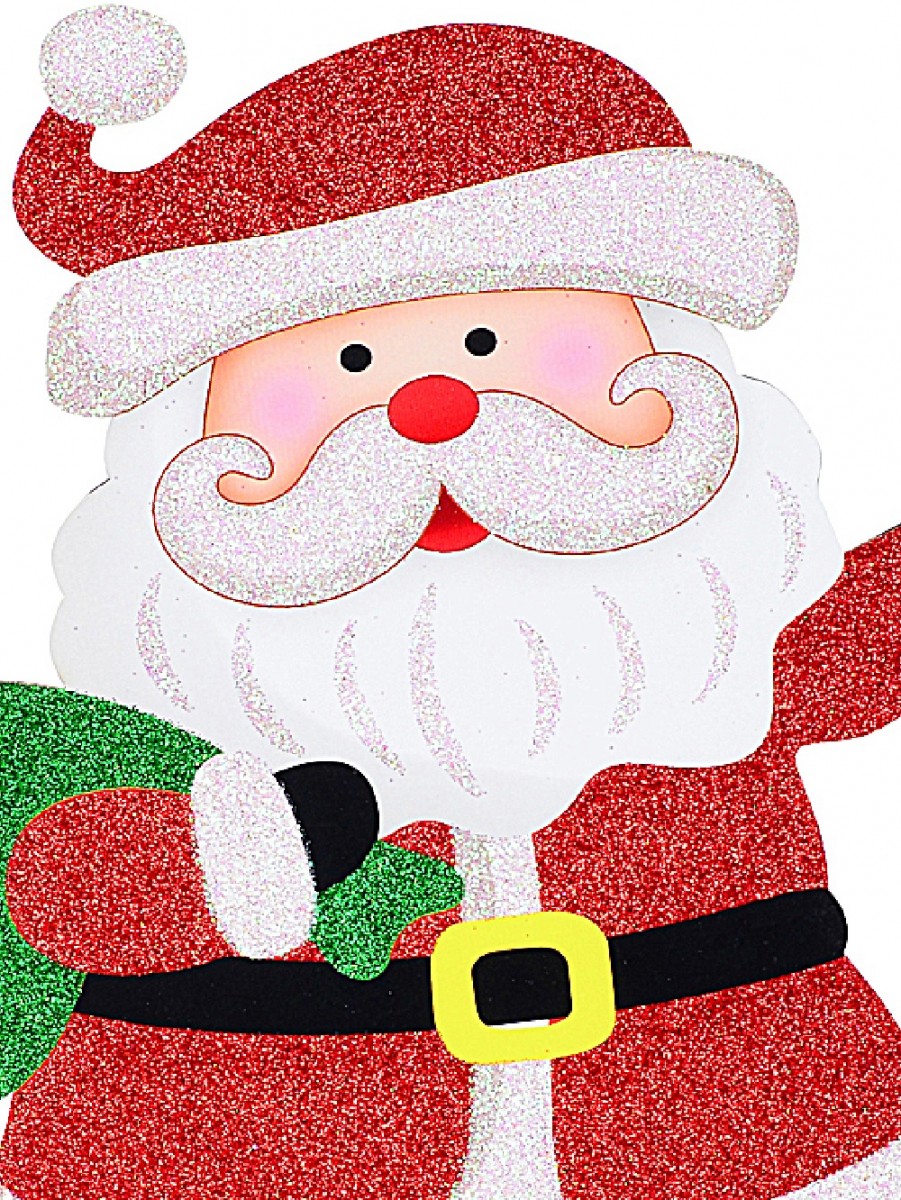 Standing 34cm by 46cm, this jolly Father Christmas in his red and white suit is ready to wave in the holidays with a big green sack over his shoulder and “Ho Ho Ho” sparkling at his feet. He's decked out in glitter - on his hat, jacket, beard, sack and those brilliant stripy letters - for that extra festive pop. It's lovely next to ornaments, lights or nestled amongst garlands of pine.