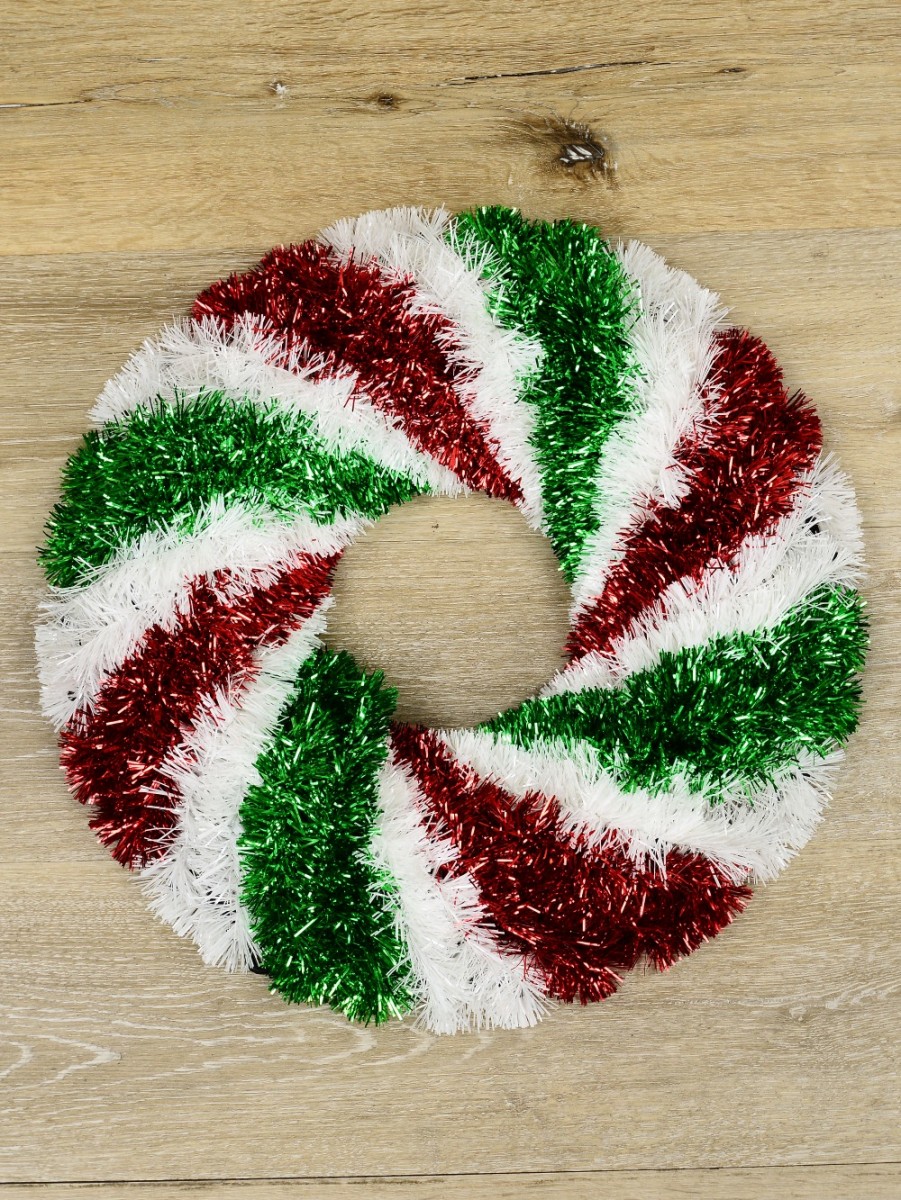 Our 48cm Metallic Red & White Candy Swirl Christmas Wreath Tinsel Plaque really catches the light ' this one is a showstopper. The moment we unpacked it, our shop just felt more like Christmas. It's got these brilliant red and white metallic tinsel strands spun together in a candy swirl pattern that reminds us of childhood sweets and all those magical Christmas mornings. The ring shape has a sturdy black polymer frame underneath, so it keeps its bold hemisphere structure no matter where you hang it, and there's a black ring hidden inside the frame that makes decorating it with ribbons or extras dead easy too.