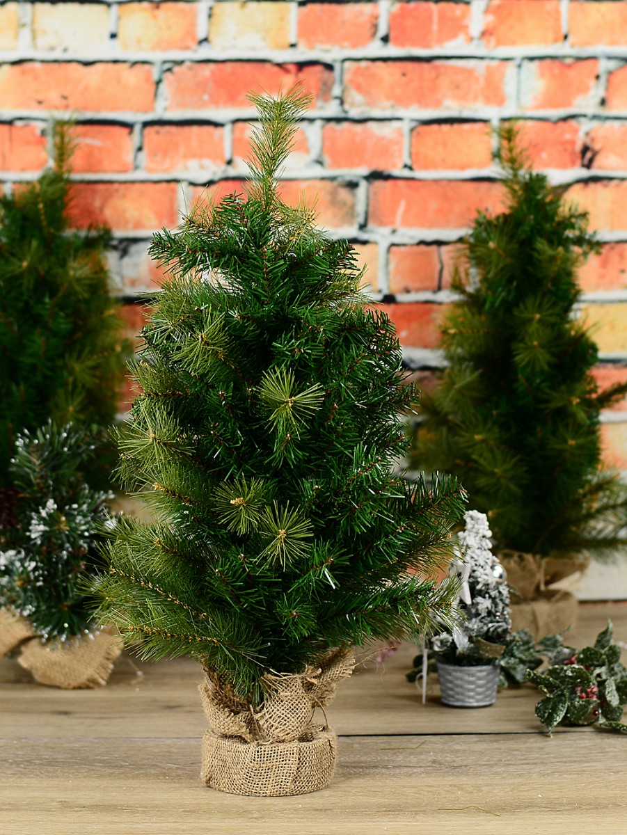 Table top Christmas trees are a great choice to celebrate the yuletide season even when you don't have the budget or the space to accommodate a full-sized tree in your home. This particular artificial Balsam pine is a cute little piece that stands 65cm high and 38cm wide ? perfect for a wide variety of surfaces from your home's coffee table and your bedroom window sill to your office desktop and water cooler. Another good thing about this artificial tree is that you can easily store it away when not in use. Carefully box it up, put it away and bring it out for next year's Christmas in no time at all. It even comes with a burlap base bag to make it look more attractive. The tree itself is cute, but it'll definitely need a few more bits and baubles to make it really fit to the yuletide season. Check out our extensive catalogue for Christmas decorations that matches well with this line of table top Christmas trees!