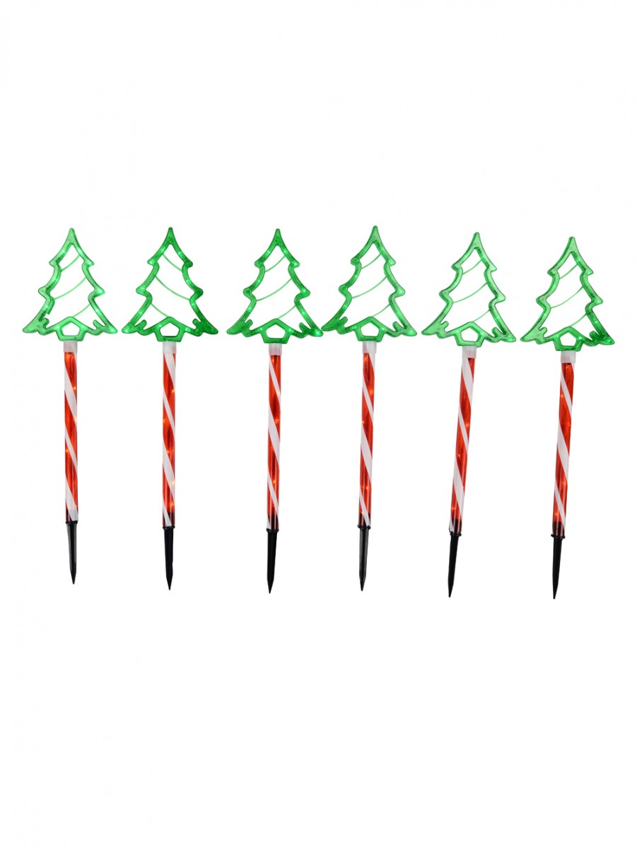 Let your festive spirit shine with the 6x 61cm Green Trees on Red & White Candy Stripes Path Light Set. Whether kissed by sunlight or powered by plug, these charming lights grace your footpath, driveway or garden with brilliance. Fall in love - make them your new Christmas favourite today!