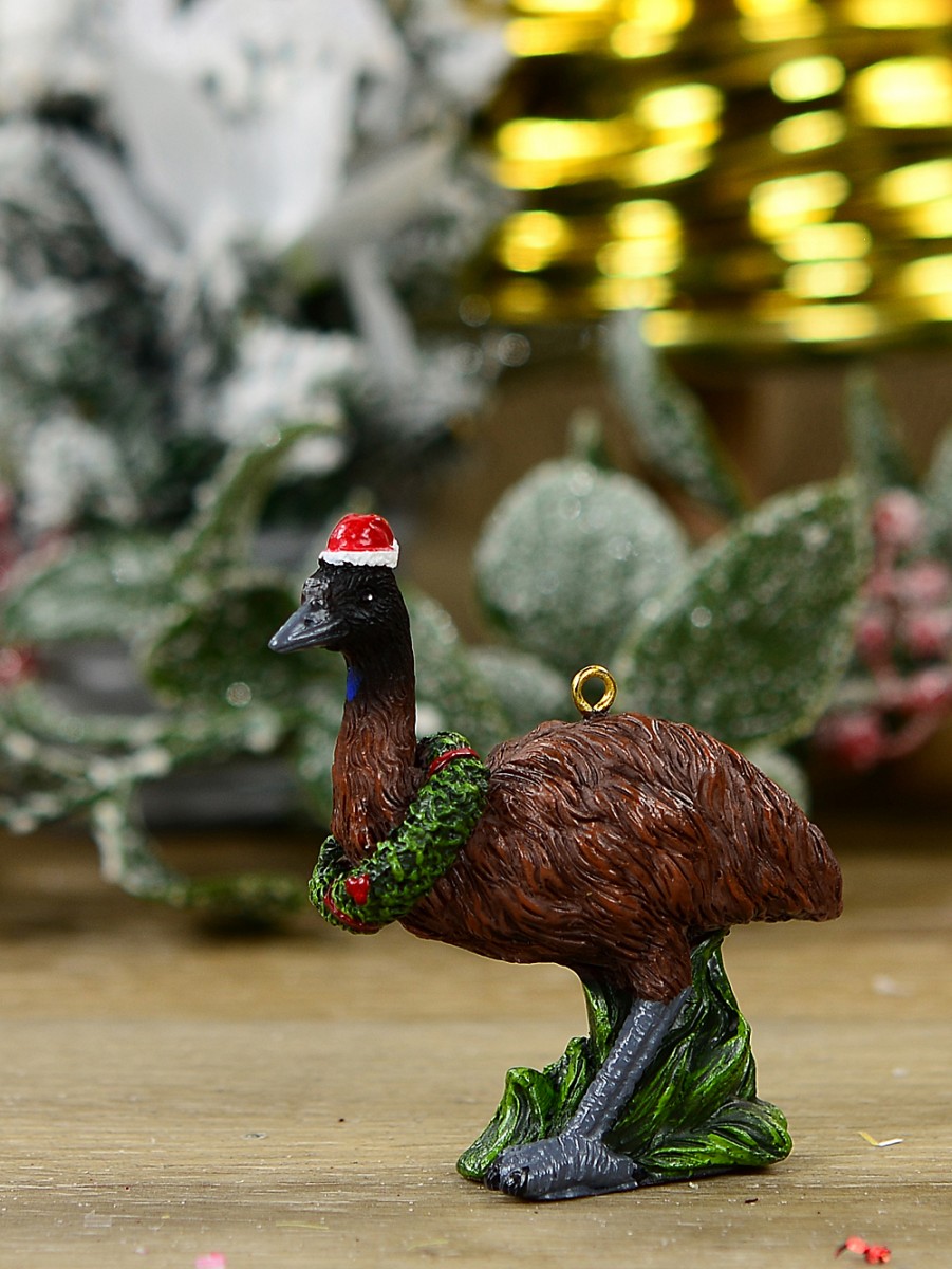 Whether you're looking for something simple to remind friends of home or are keen on going all out with these stunning Australian native wildlife designs, our 80mm Emu With Wreath Resin Christmas Tree Ornament will help you create a truly festive atmosphere for the entire family. Attach this fun little emu to your family room tree or even use it as décor in other parts of the home (we love them on door handles!). It'll add a bit of joy wherever it goes.