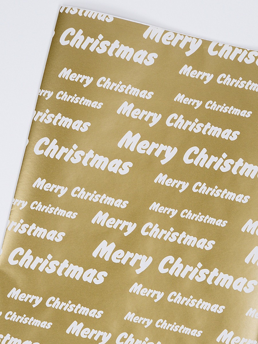 - white 'Merry Christmas' print on gold