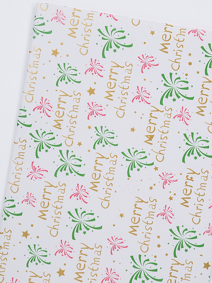 - gold 'Merry Christmas', stars & dots with red & green fireworks print on white