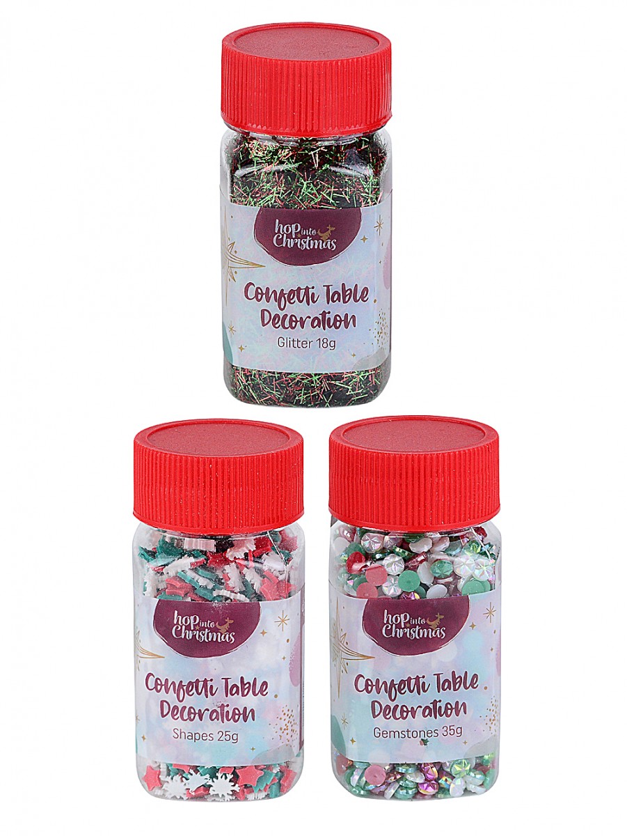 You might get sparkling metallic glitter, shiny gemstones with a beautiful iridescent finish, or classic stars and snowflakes paired with little green tree shapes that'll make any setting feel enchanting. The bottles measure 35mm x 35mm x 8cm and each pack is sold individually - but if you order two or more at once, we'll mix it up depending on what's available.
